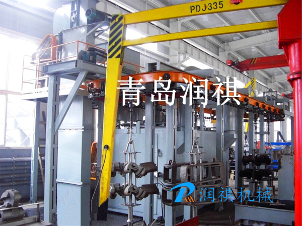 工件隨吊鏈可連續運行、步進運行或采用積放推式懸鏈輸送工件,使工件在裝卸料以及拋丸區分別處于停止狀態,實現定點裝卸和定點拋丸工序,根據工件不同可單點吊重50~2000kg,且生產率高,運行可靠,對各類易吊掛類零件的大批量清理,非常適用。如發動機缸體缸蓋、電機殼體、齒輪、摩托車發動機殼體、機車鉤尾框組件、轉向架組件、五金工具殼體、水泵等清理效果尤佳。通過拋丸清理,不但可以去除工件表面的銹蝕,清理掉結構件上的焊渣,還可以消除工件的焊接應力,提高工件的抗疲勞強度,增加工件噴漆時的漆膜附著力,并達到提高整個工件表面及內在質量的目的。是汽車、拖拉機、柴油機、電機、閥門等行業的理想選擇等。一般可按照用戶產品要求設計制作。